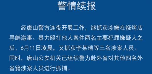 唐山打人案警方已抓获8名嫌疑人